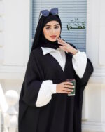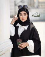 جنس پارچه مشکی سوفیا وپارچه سفید کرپ مازراتی، که فری سایزه ودرقد دلخواه شما قابل سفارش است