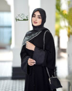 جنس پارچه مشکی حریر اسود وپارچه سراستین ژاکارده فری سایزه ودر قد دلخواه شما قابل سفارش است جلوبازه و تا پایین دکمه مخفی کارشده